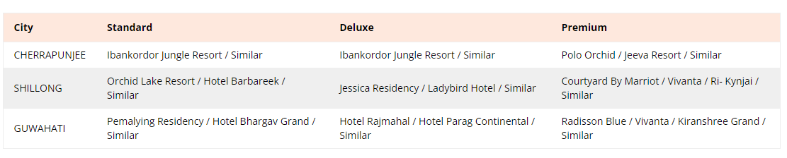 GUWAHATI STATION / GUWAHATI AIRPORT– CHERRAPUNJEE (4400 FT / 100 KMS / 04 HRS) |